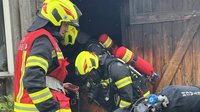 Zum Zeitpunkt der Alarmierung befanden sich bereits viele Feuerwehrmänner und -frauen im Feuerwehrhaus, da zeitgleich die Leistungsprüfung für das Branddienst-Leistungsabzeichen geplant war. Alle Einsatzfahrzeuge rückten daher innerhalb kürzester Zeit zum Brandobjekt aus. Am Einsatzort stellte der Einsatzleiter fest, dass das Feuer in einem neben dem Wohnhaus stehenden Schuppen ausgebrochen war. Ein Atemschutztrupp führte unverzüglich einen Innenangriff mit einem Hochdruckrohr durch. Dabei wurde ersichtlich, dass sich der Brand bereits auf gelagertes Holz und andere Gegenstände ausgebreitet hat. Eine weitere Ausbreitung konnte jedoch verhindert werden. Die angebrannten Gegenstände wurden aus dem Gebäude gebracht und im Freien abgelöscht. Mit dem Hochleistungslüfter konnte das Brandobjekt rauchfrei gemacht werden. Da auch der Holzboden bereits in Brand stand, musste dieser teilweise mit der Motorsäge herausgeschnitten und abgelöscht werden. Nach knapp einer Stunde konnte “Brand aus” gegeben und die Leistungsprüfung im Feuerwehrhaus fortgesetzt werden.