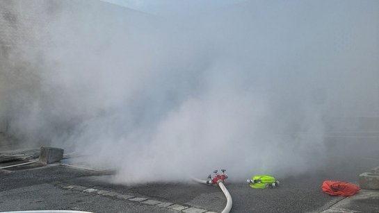 Ein weiterer Angriffstrupp führte einen Löschangriff mit schwerem Atemschutz zur Lokalisierung des Brandes durch. Im Bereich des Dachbodens wurde eine Person vermisst. Die Person konnte von einem Atemschutztrupp gesucht und gerettet werden. Zur Sicherstellung der Löschwasserversorgung musste eine Schlauchleitung zu einem Löschwasserbehälter verlegt werden. Nach rund einer Stunde konnte die Übung erfolgreich beendet werden.